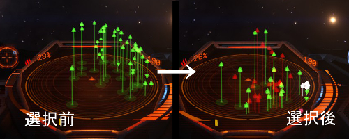 紛争地域突入直後と、ファクション選択後のレーダー。突入直後は敵対者がおらず、流れ弾が当たるだけだが、勢力を選んだとたん敵が襲ってくるので注意。