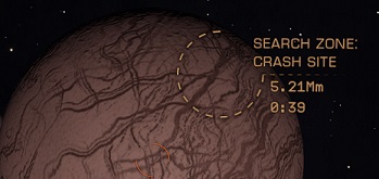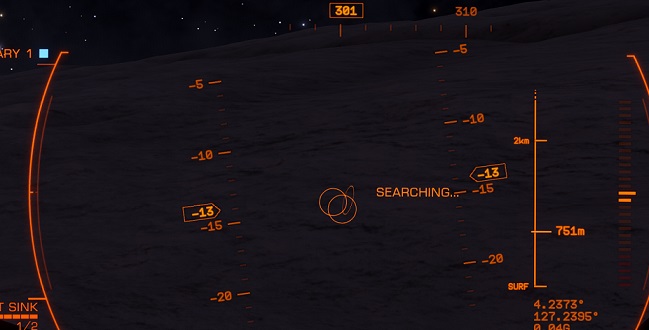 ミッションアップデートで指示された惑星・衛星へ移動後、ある程度まで近づくと地表上の「目標となる墜落ポイント」を表示してくれる。